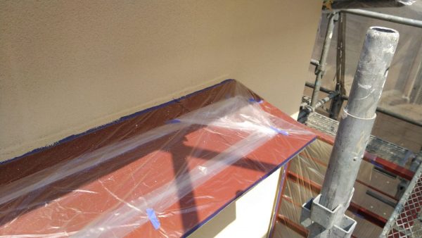 今日の作業は続きで2階周りの中塗り、乾きしだい上塗りの作業です。