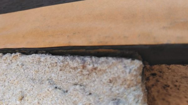 この画像ではわかりにくいですが拡大すると隙間があります。下塗りを先にする訳はこれに対する処置です。どっちつかずの色分けでは水が入ります。ぱっと見、見えがかりは皆さま補修します。下から見えない高い所はどうだか…私は徹底的に補修します。アリも入れさせないつもりで!