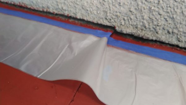 今日の作業は養生(ビニール貼り)です。窓、屋根、土間等塗る塗料で汚さないようにビニール、テープ、シートで養生保護します。