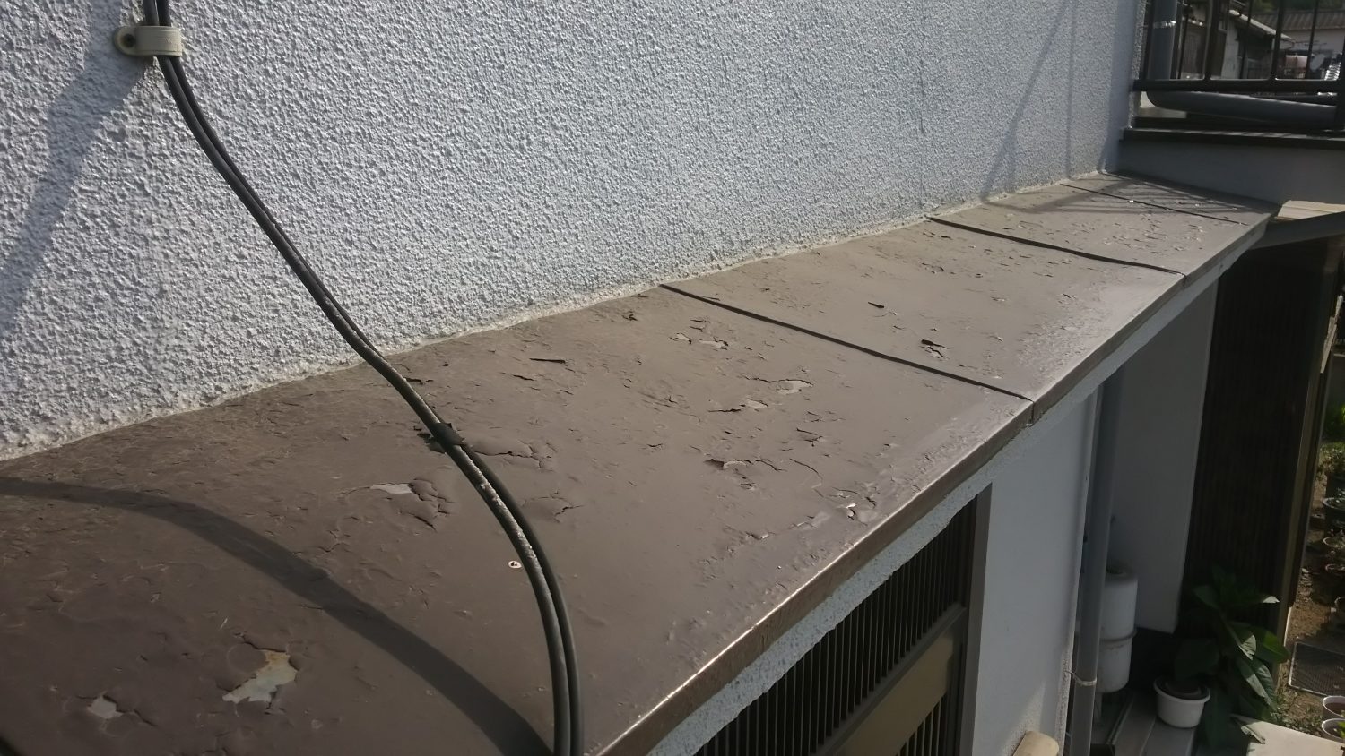 作業内容は、ひさしの塗り替え作業をしました。